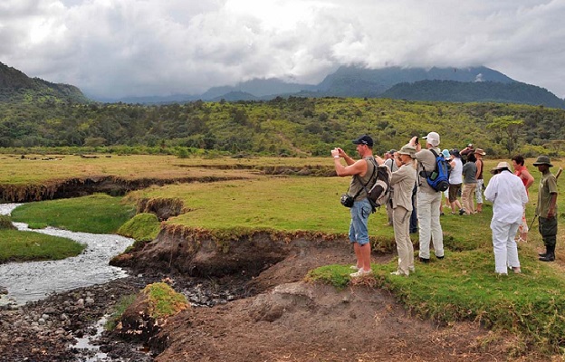 Arusha National Park is a relatively small park, covering an area of 137 square kilometers (52.9 square miles) Lying between the peaks of Kilimanjaro and Meru, Arusha National Park is an area of outstanding beauty. The Park has a wide range of habitats, from the string of crater lakes where many water birds can be watched, through the highland montane forest and on up to the imposing summit of Mt. Meru. The interesting geology of the area is reflected in the impressive view of the ash cone and cliff face leading to the summit of Mt. Meru. Three distinct areas are to be found within Arusha National Park: Ngurdoto Crater, the Momela Lakes and the rugged Mt. Meru. Altitudes range from 1,500 meters (4,921 feet) above sea level at Momela to over 4,500 (14,764 feet) meters at the summit of Meru.